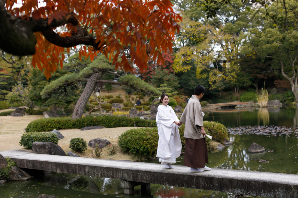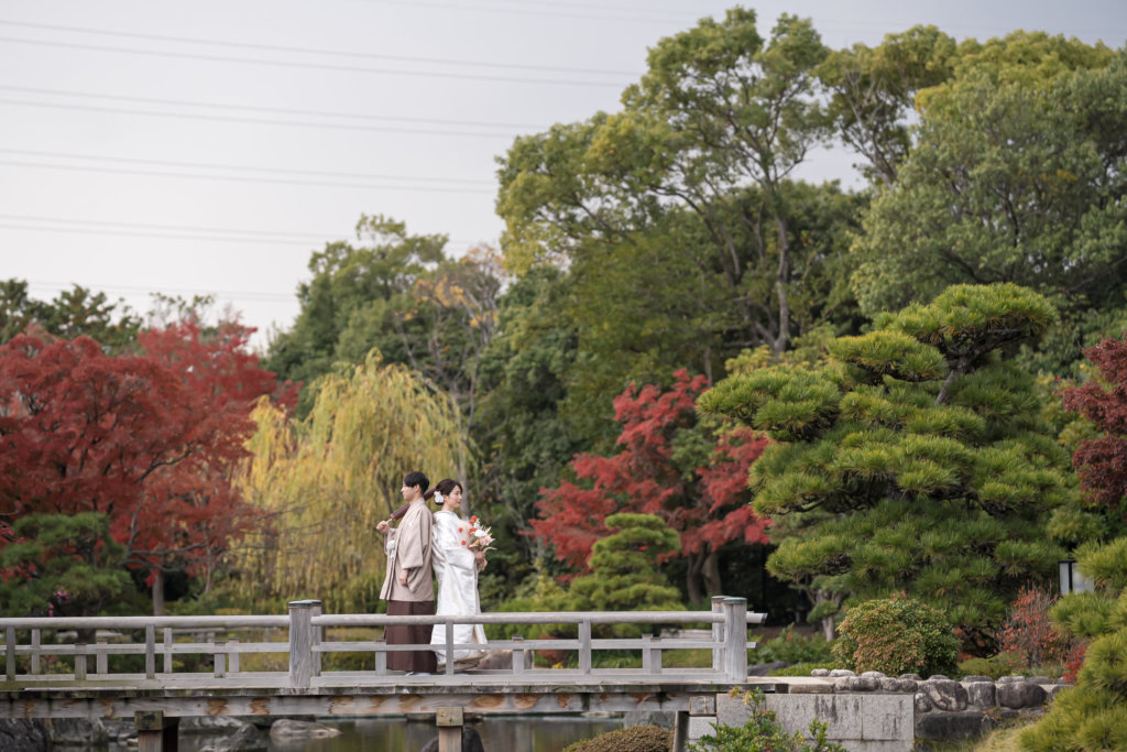 そんな歴史ある建物の敷地内にある日本庭園で、風情ある和装前撮りが楽しめます♪