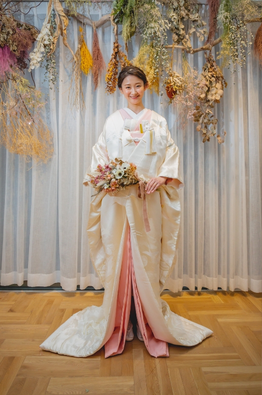 特徴:桜の花びらや、可憐なお花を連想させるような可愛い色味が特徴の色掛下。明るさと透明感を兼ね備えた一着のため、より穏やかに明るい空間を創り出す効果があります。ご新婦様らしさをより惹き出す一着とも言えるでしょう。