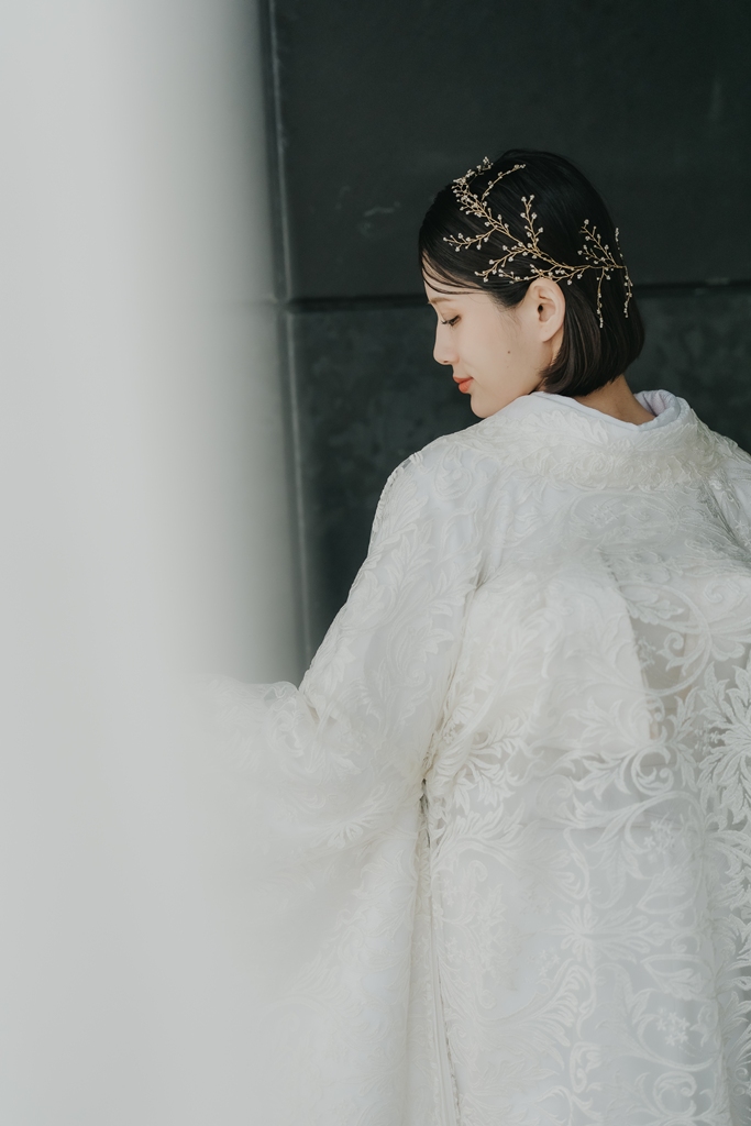 白無垢は光と影のコントラストによって刺繍の繊細さが際立ち、静かで大人な印象に仕上がります。
