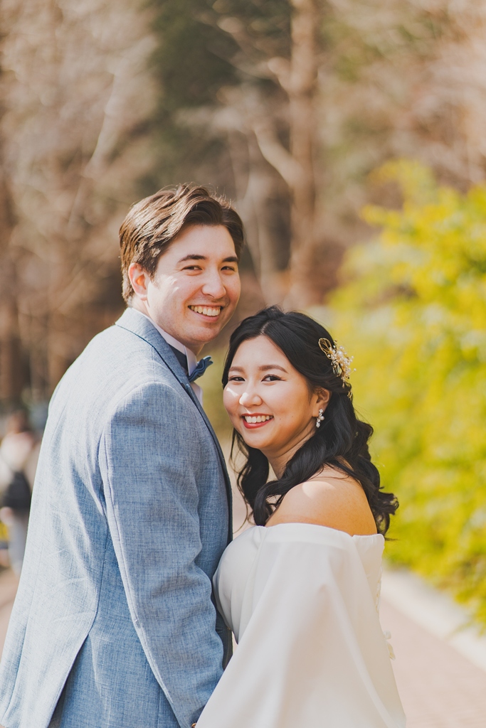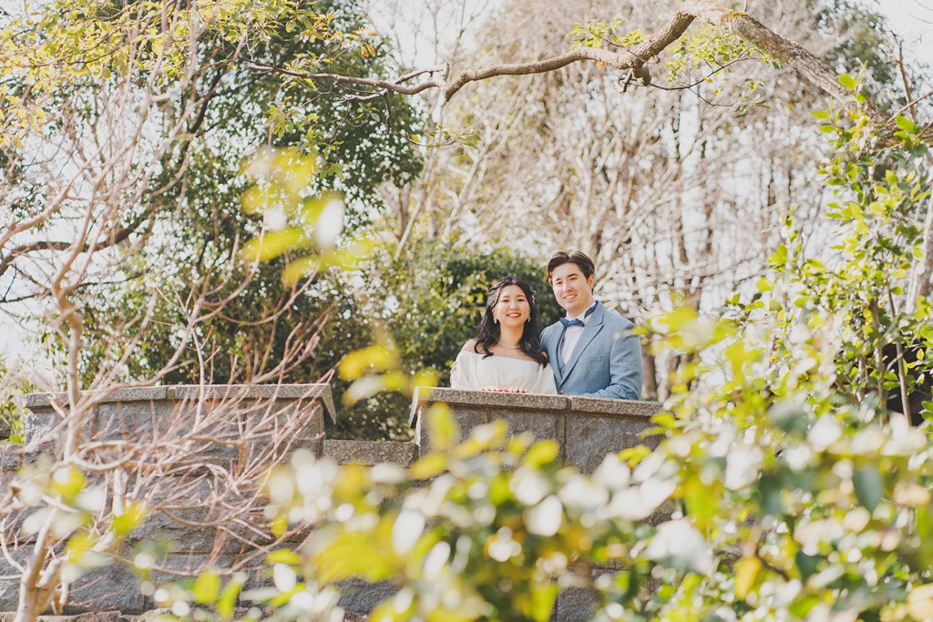 色とりどりのお花と緑に囲まれた、美しいロケーションでのおふたりの撮影は、本当に特別なひとときでしたね!最初からおふたりの明るい笑顔があふれていて、歩くたびにその仲の良さが伝わってきて、私たちスタッフもとても心温まる時間を過ごさせていただきました。