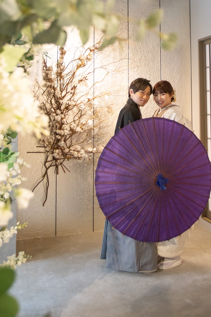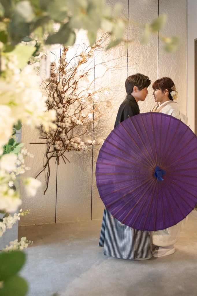 オシャレな白無垢コーデでスタジオ撮影