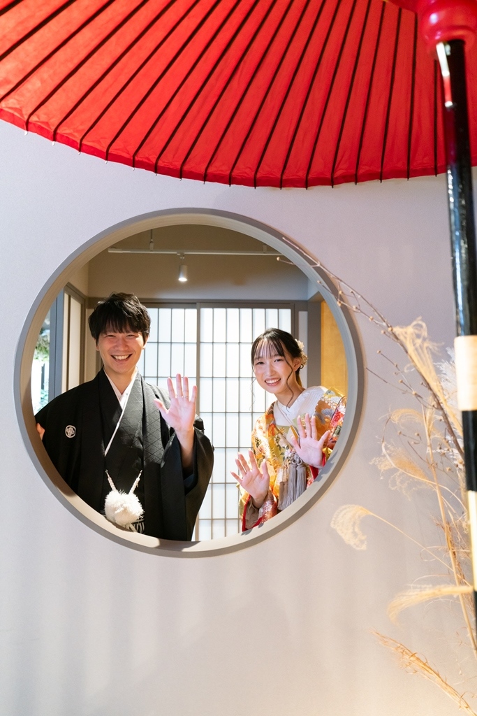 また、和傘やお団子などのアイテムも使ってお二人らしい笑顔のお写真も沢山ありましたね♡この度は数多くあるスタジオの中から当店をお選びいただき、誠にありがとうございました!