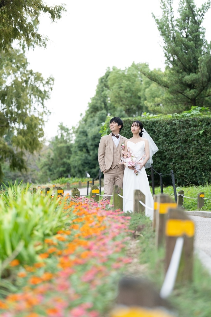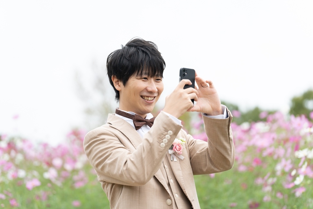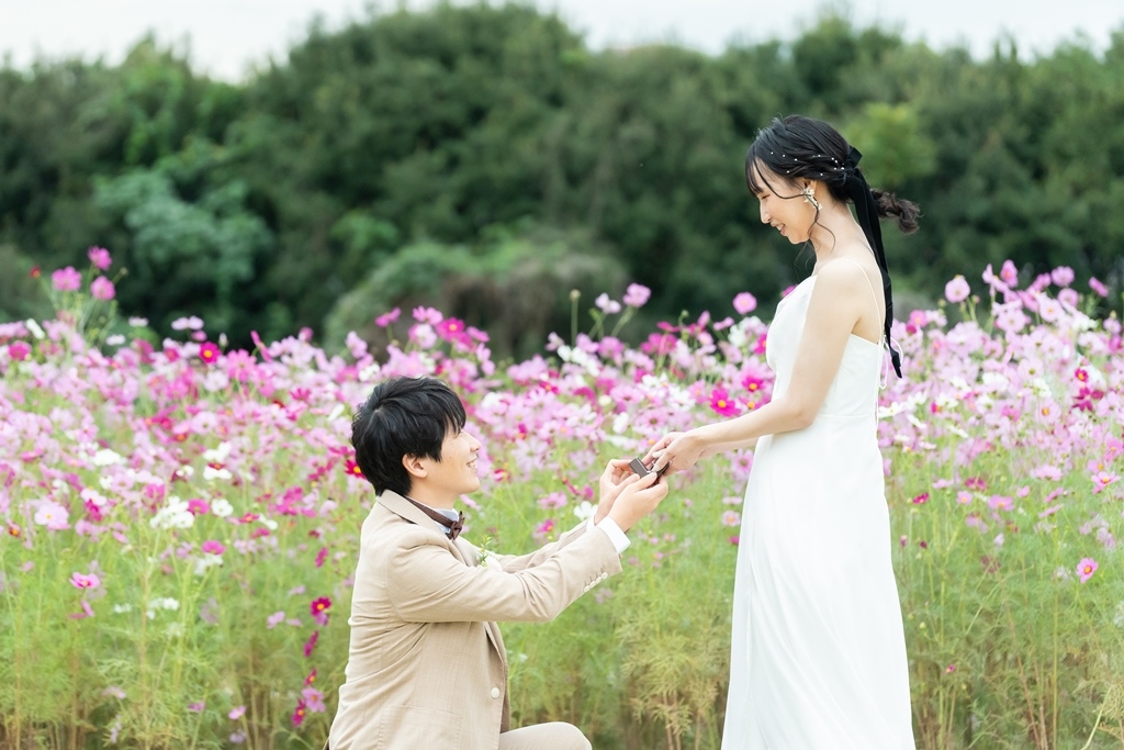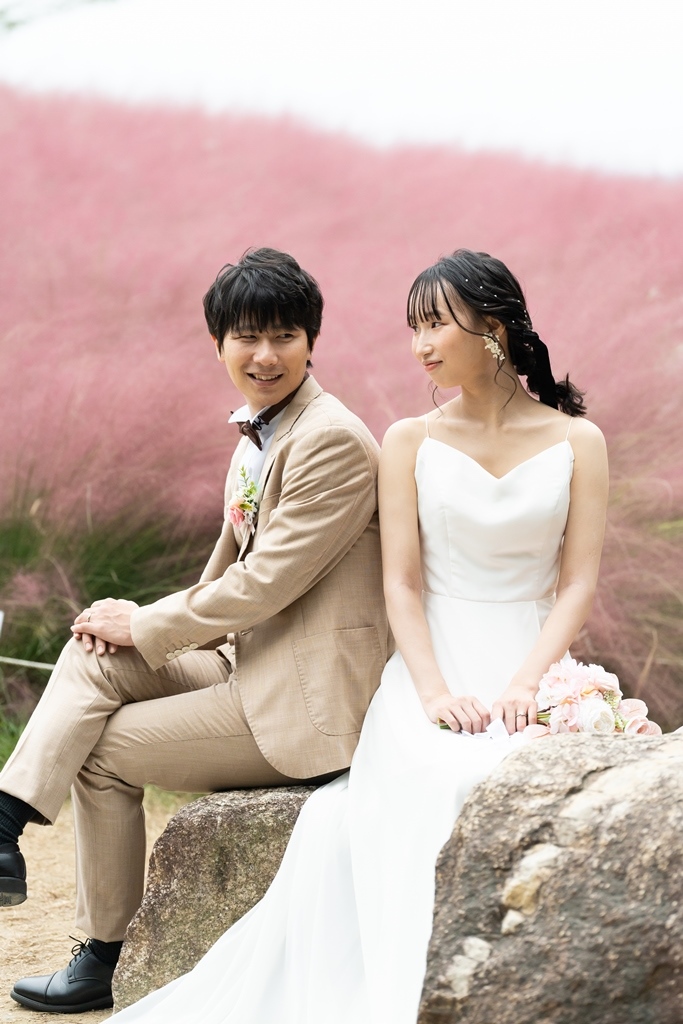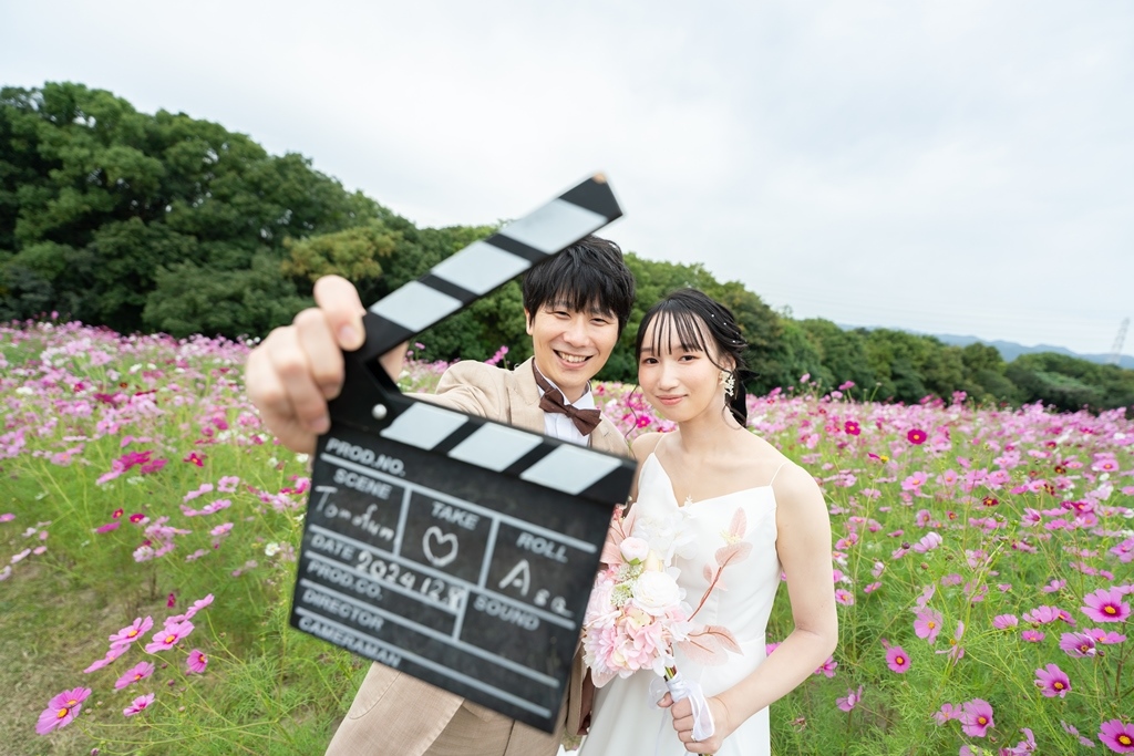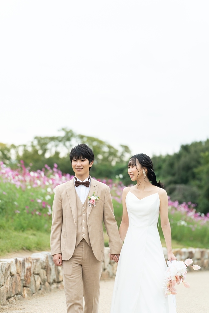 色鮮やかな秋桜に真っ白なウェディングドレスが映えていて、とてもお似合いです✨どれも素敵なお写真で、お二人の良い想い出になっていたら嬉しいです!
