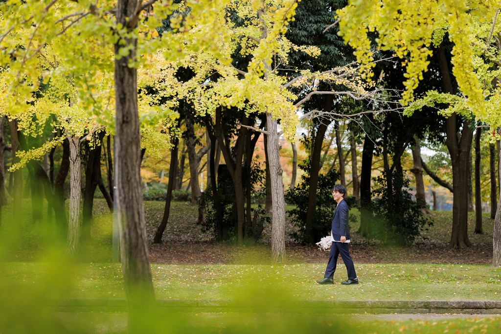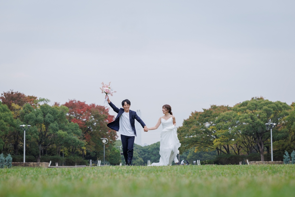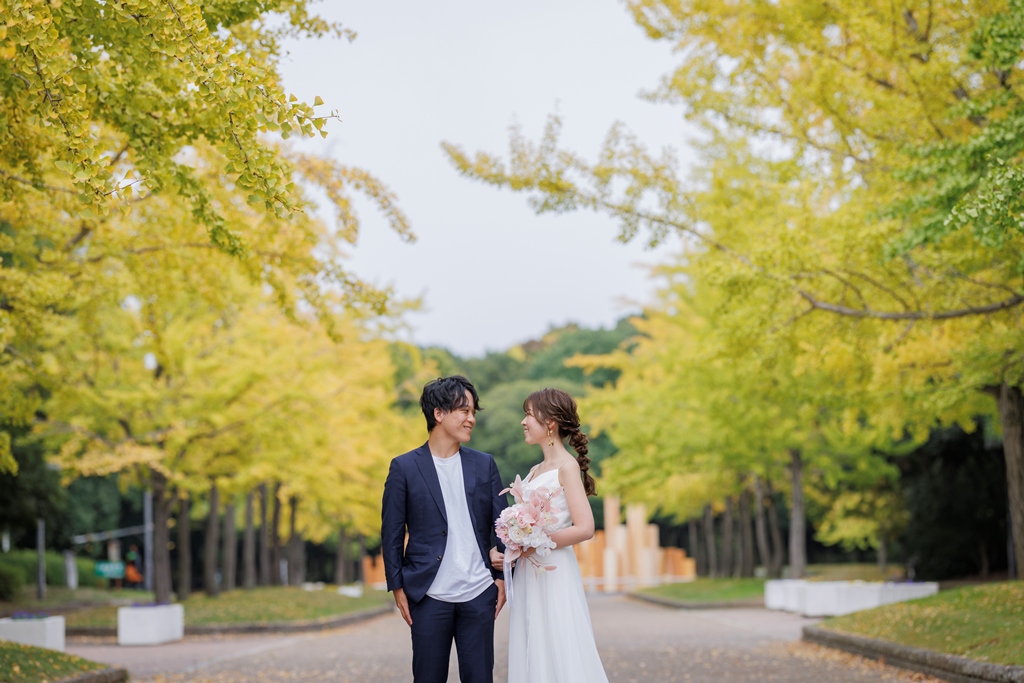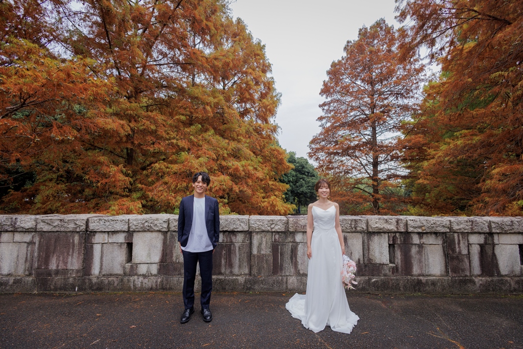 広々とした大泉緑地公園で、緑と紅葉が彩る秋の前撮り撮影🍁
