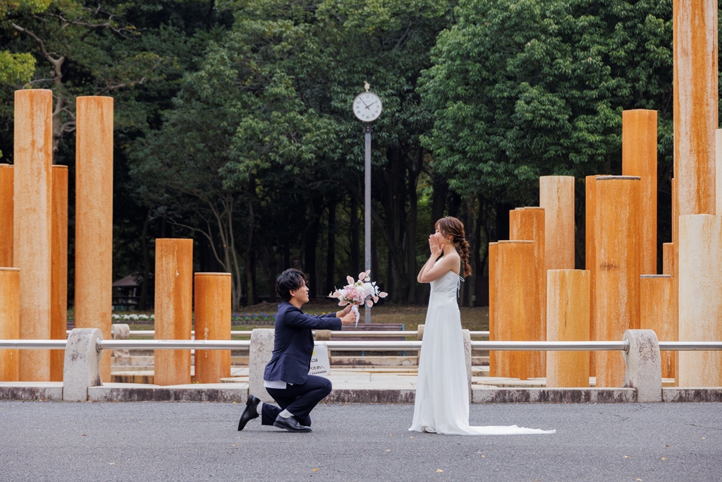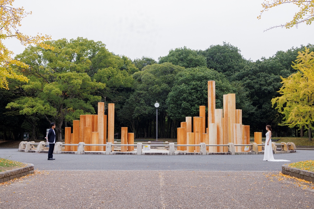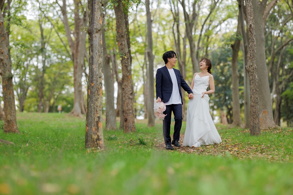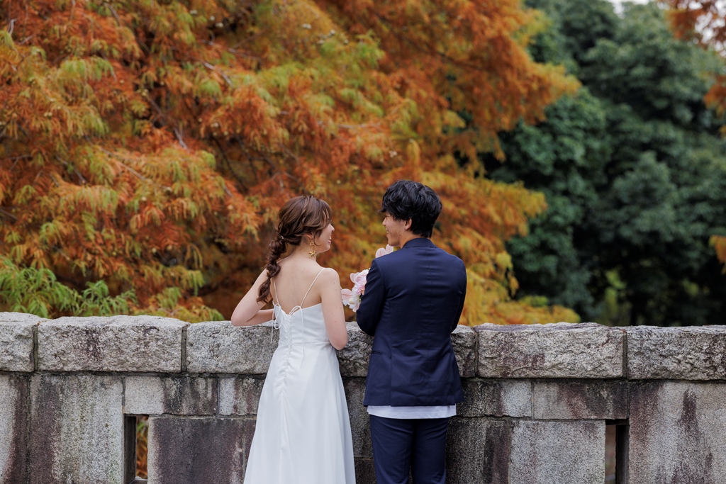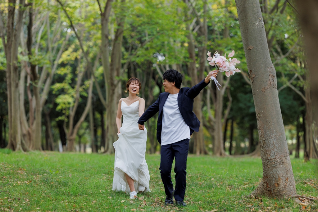 広々とした大泉緑地公園で、緑と紅葉が彩る秋の前撮り撮影🍁