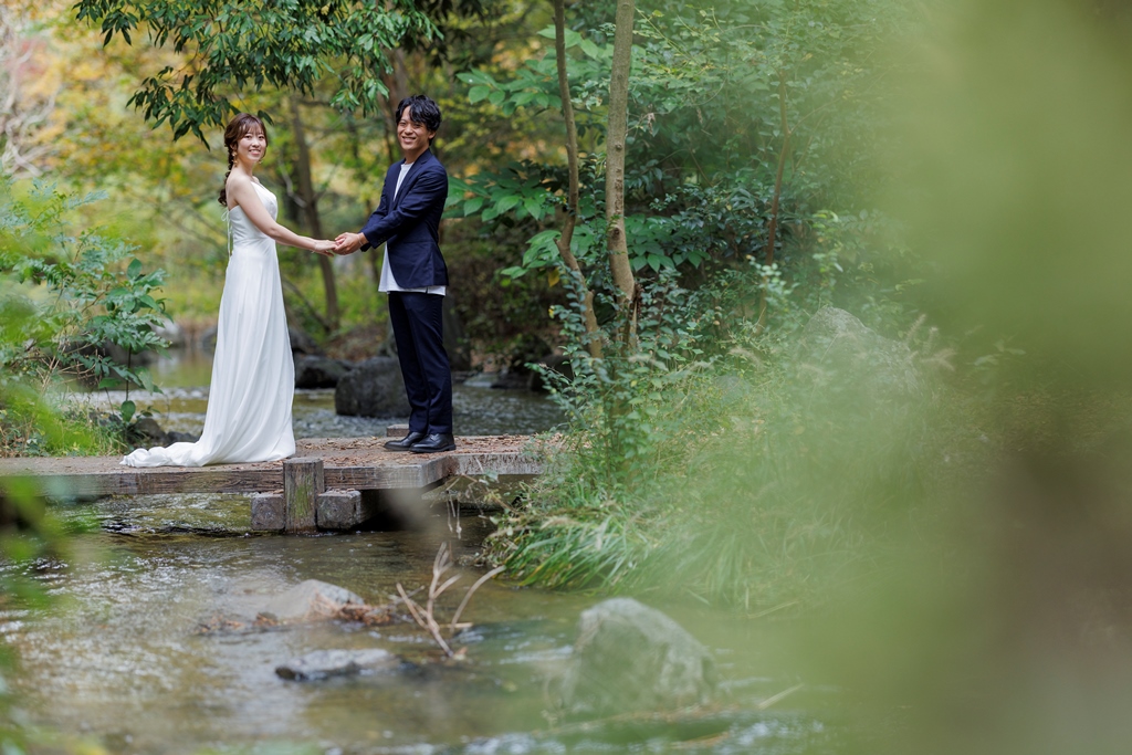 洋装でのムービーとお写真撮影、本当にお疲れ様でした☺自然の中で笑顔いっぱいのお2人のお写真、とても素敵でした♡