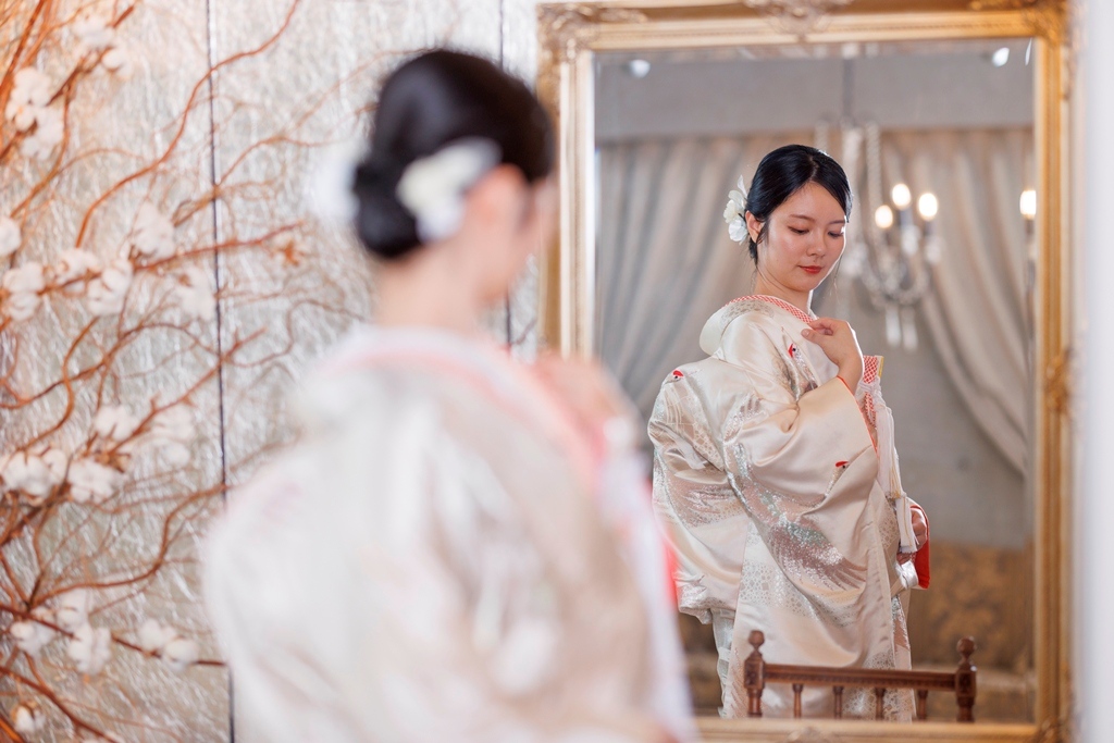 白無垢に差し色で赤を取り入れているのも、とってもお似合いです♡この度は、当館にて前撮り撮影をお任せいただき、