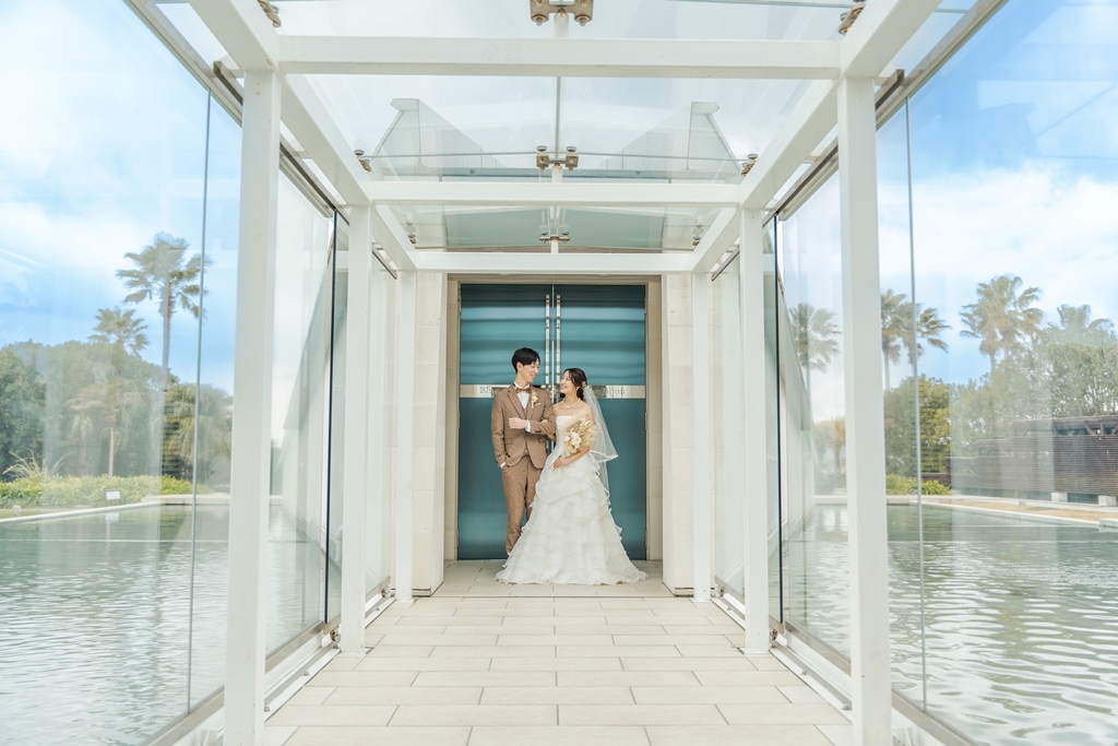 神聖なチャペルの中で、おふたりが寄り添う姿はとても美しく、まるで映画のワンシーンのようでした。新婦様のウェディングドレスは光に包まれてより一層輝き、新郎様の凛々しいタキシード姿もとても印象的でした。撮影中のおふたりの笑顔や優しいまなざしが、写真一枚一枚にしっかりと刻まれています。完成したお写真が、おふたりにとってこれからの人生を共に歩む証として、いつまでも輝き続ける宝物となりますよう願っております。