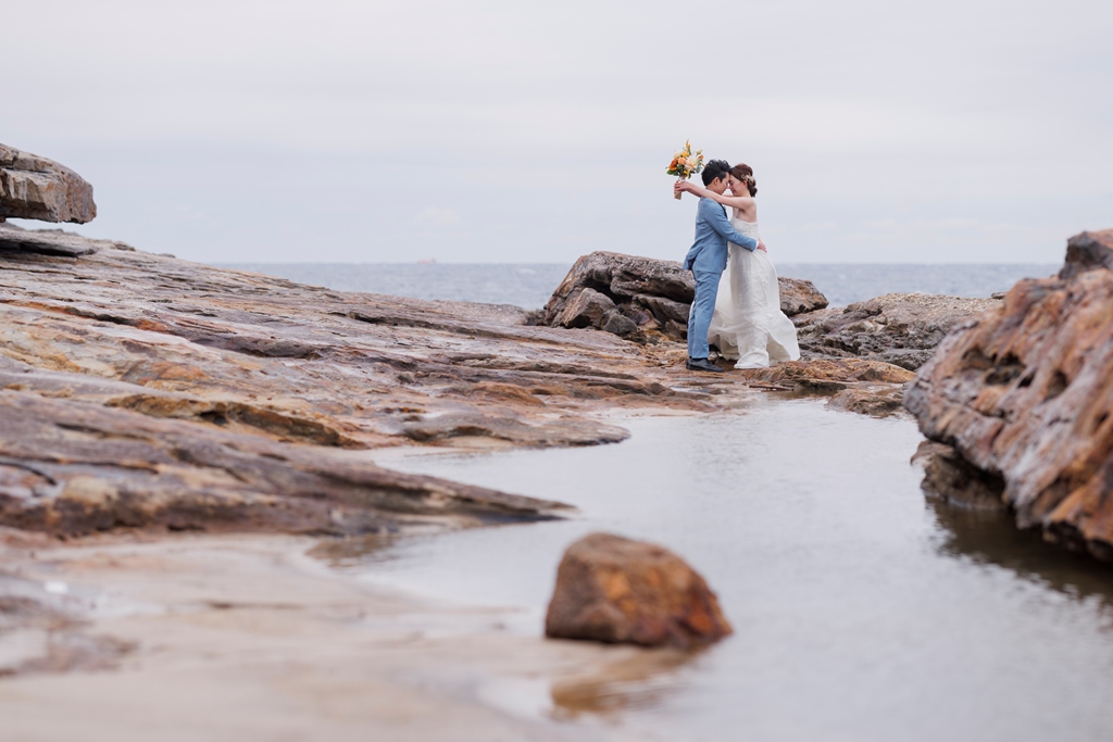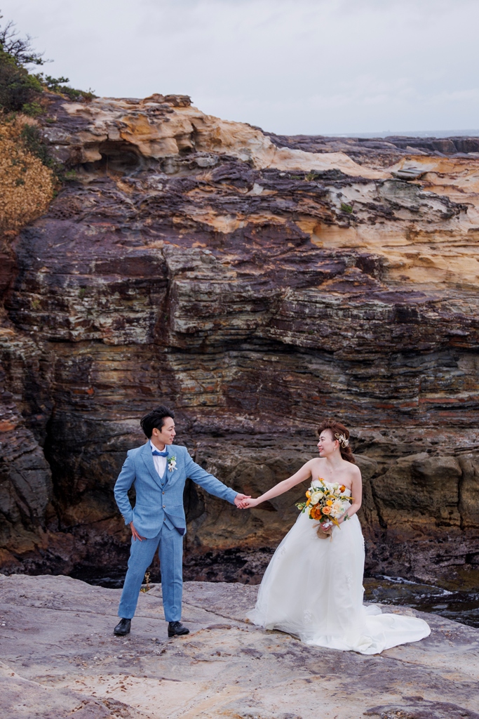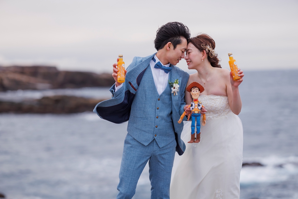 千畳敷の力強い景色の中で、ドレスとタキシードが本当に映えていて、どこを切り取っても絵になる最高の一日でしたね!海風に吹かれながらも、お互いを見つめ合う姿や、楽しそうに歩くシーンなど、一つひとつの瞬間がとても愛おしく、写真にもたくさんの”おふたりらしさ”が詰まっています。