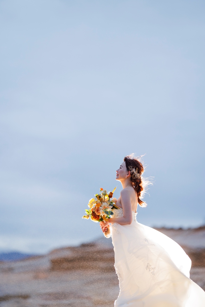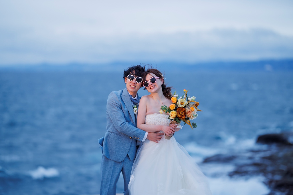 広がる海と空、そして壮大な自然に囲まれて、まるで映画のワンシーンのような素敵な時間を一緒に過ごすことができ、私たちスタッフも本当に幸せな気持ちになりました。最初は少し緊張されていたかもしれませんが、お2人の笑顔がだんだんと自然に溢れてきて、撮影が進むたびにどんどん空気が温かく、楽しいものになっていくのを感じました。