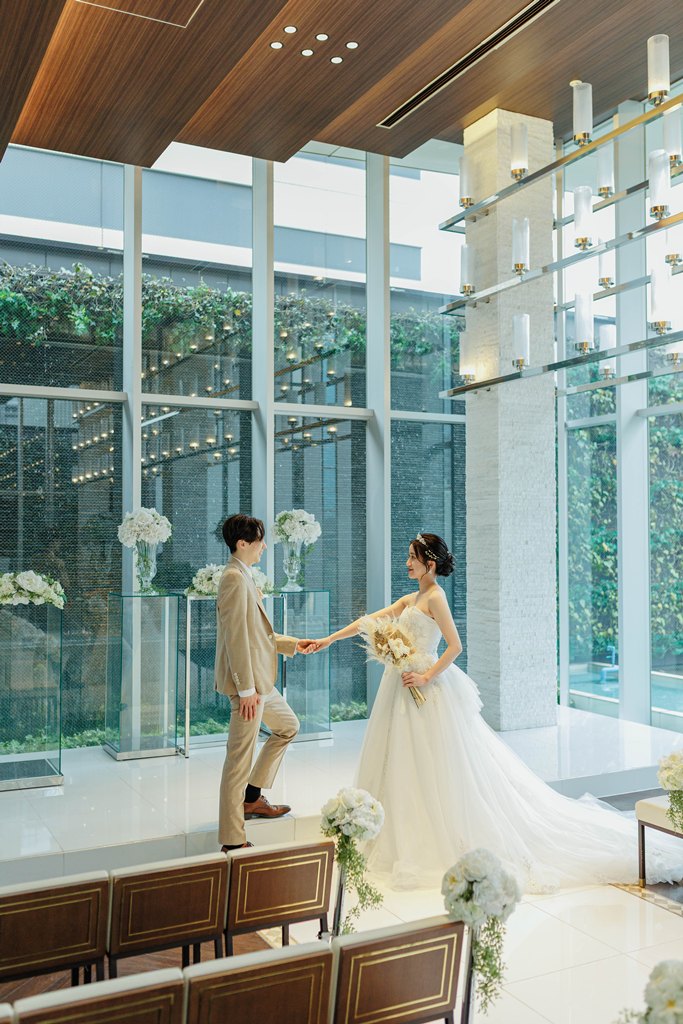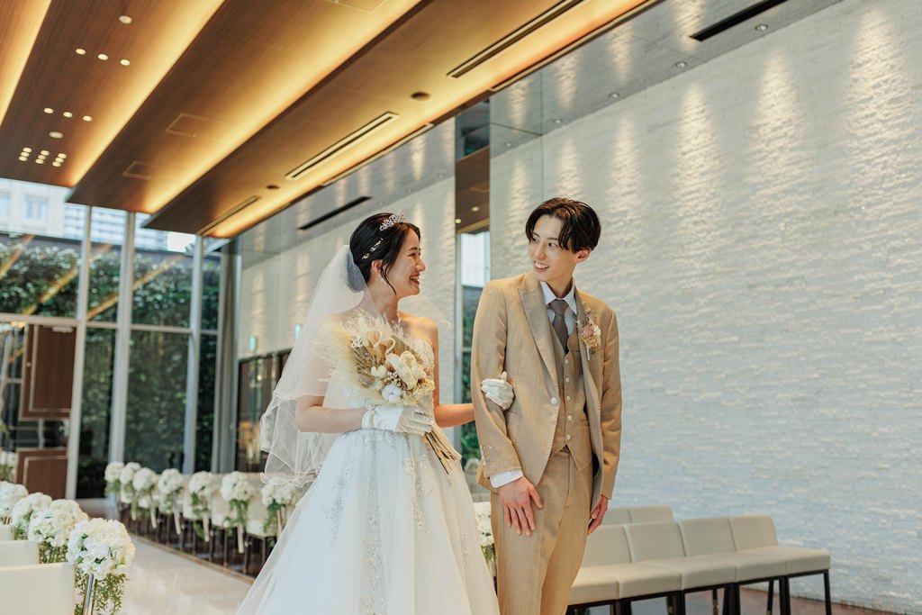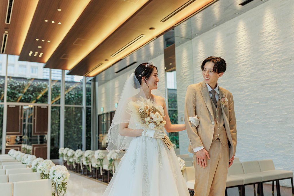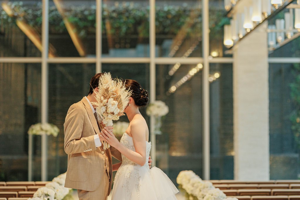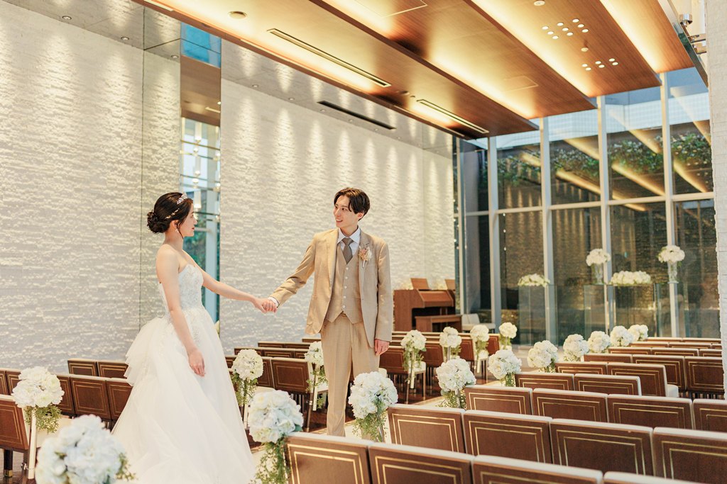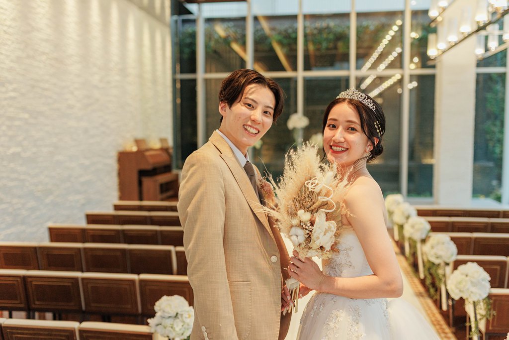 おふたりが見つめ合う瞬間、手を取り合うしぐさ、そのすべてが自然体で、見ているこちらまで幸せな気持ちに包まれました。撮影が進むにつれて、おふたりらしいリズムと空気がチャペルに広がり、そこには「結婚」という言葉だけでは表しきれない、深い絆と未来への想いが確かに存在していました。