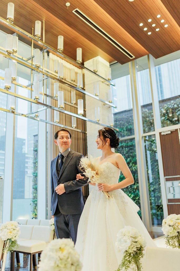 スタイリッシュで華やかなチャペルの空間に、おふたりの笑顔とドレス&タキシード姿が見事に映え、まるで映画のワンシーンのような美しい時間が流れていました。