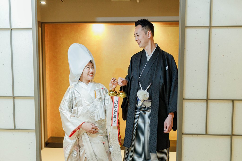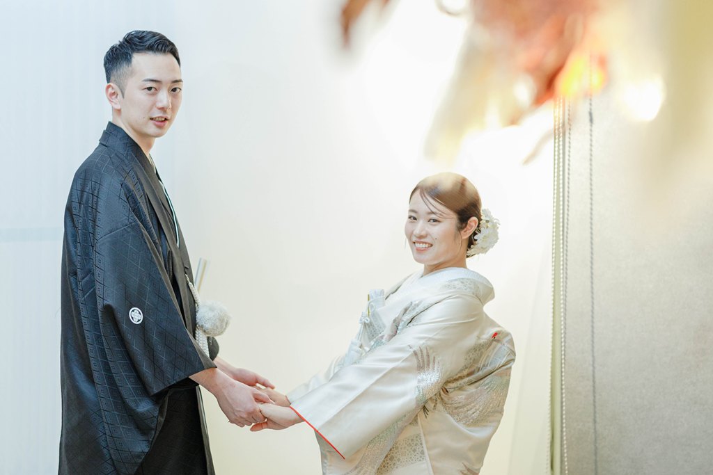 日本の美が息づく和装に身を包んだおふたりの姿は、堂々としていて、とても美しく、見惚れる瞬間の連続でした。