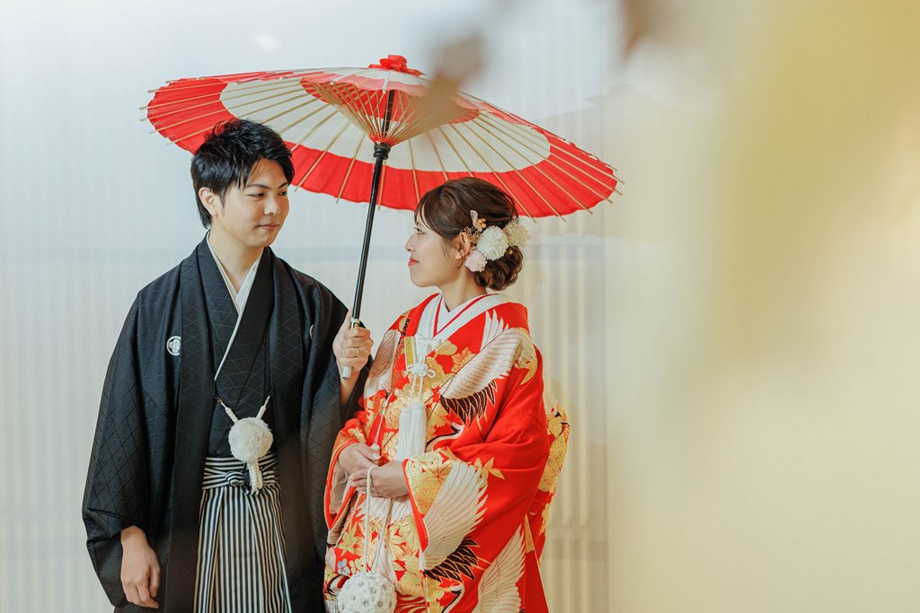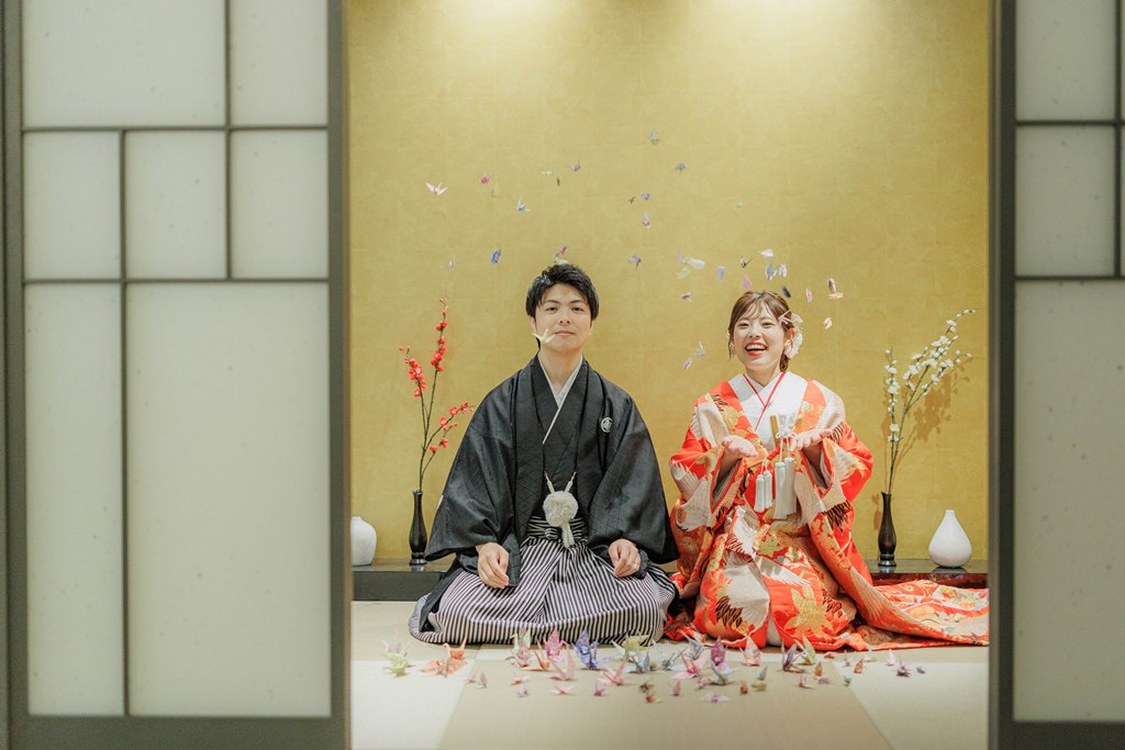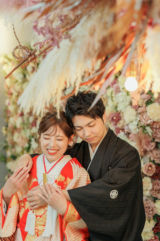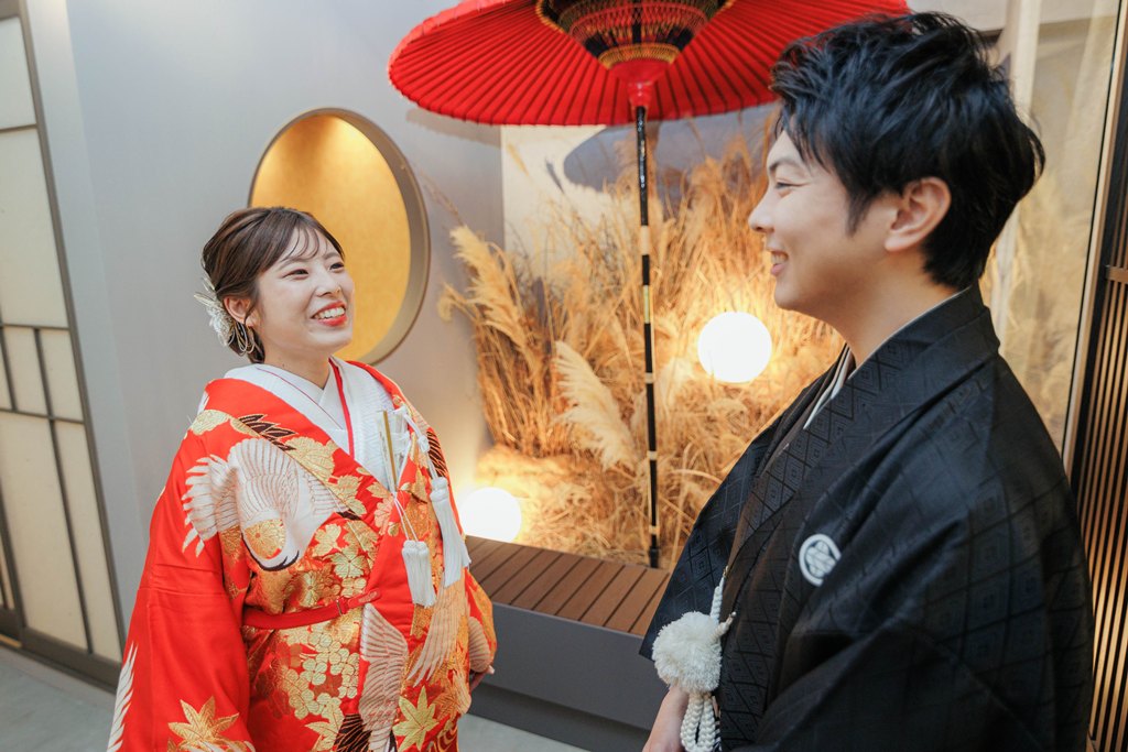 格式と美しさが息づく和装に身を包んだおふたりが、大阪のスタジオという静かな空間の中で見せてくださった表情、仕草、そしておふたりのあたたかな空気感――すべてが、まるで時を超えて結ばれた運命のように美しく感じられました。