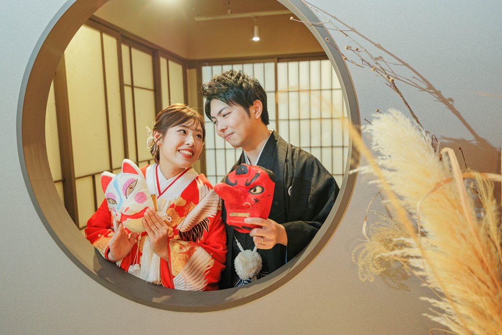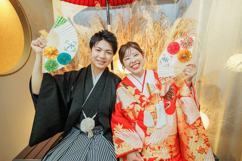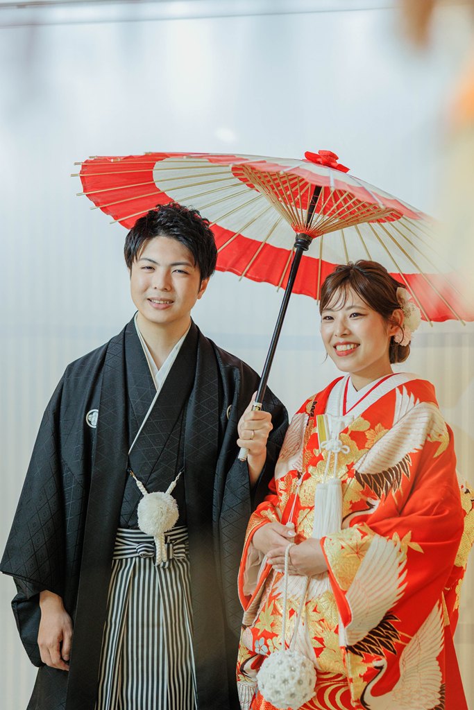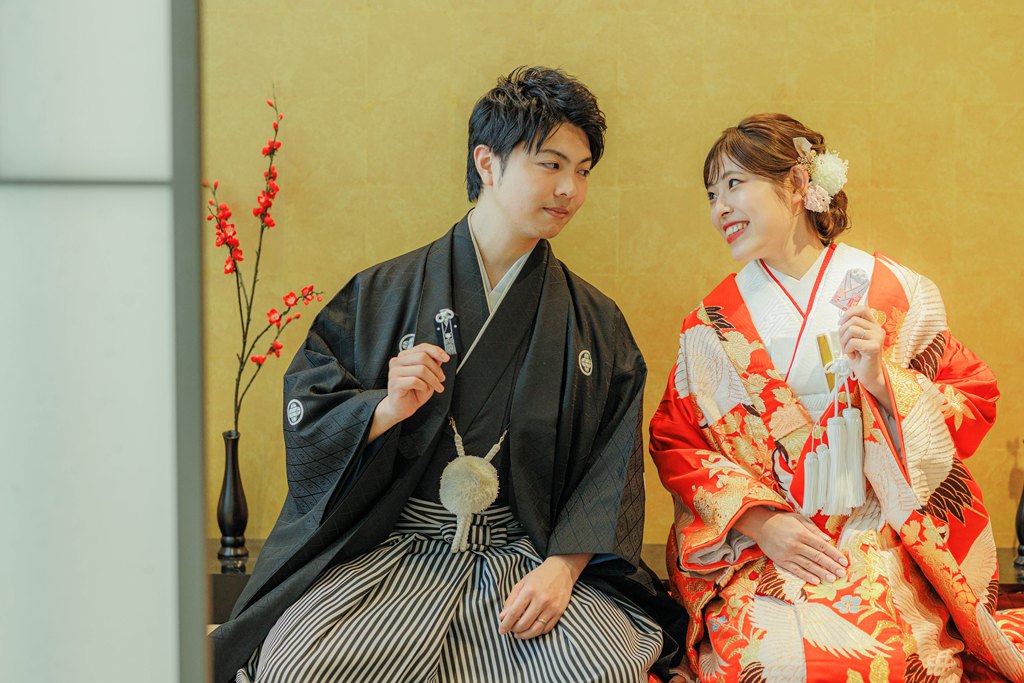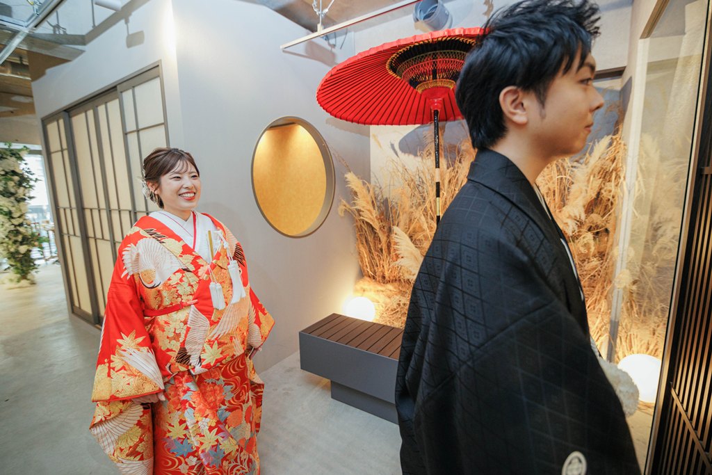 格式と美しさが息づく和装に身を包んだおふたりが、大阪のスタジオという静かな空間の中で見せてくださった表情、仕草、そしておふたりのあたたかな空気感――すべてが、まるで時を超えて結ばれた運命のように美しく感じられました。