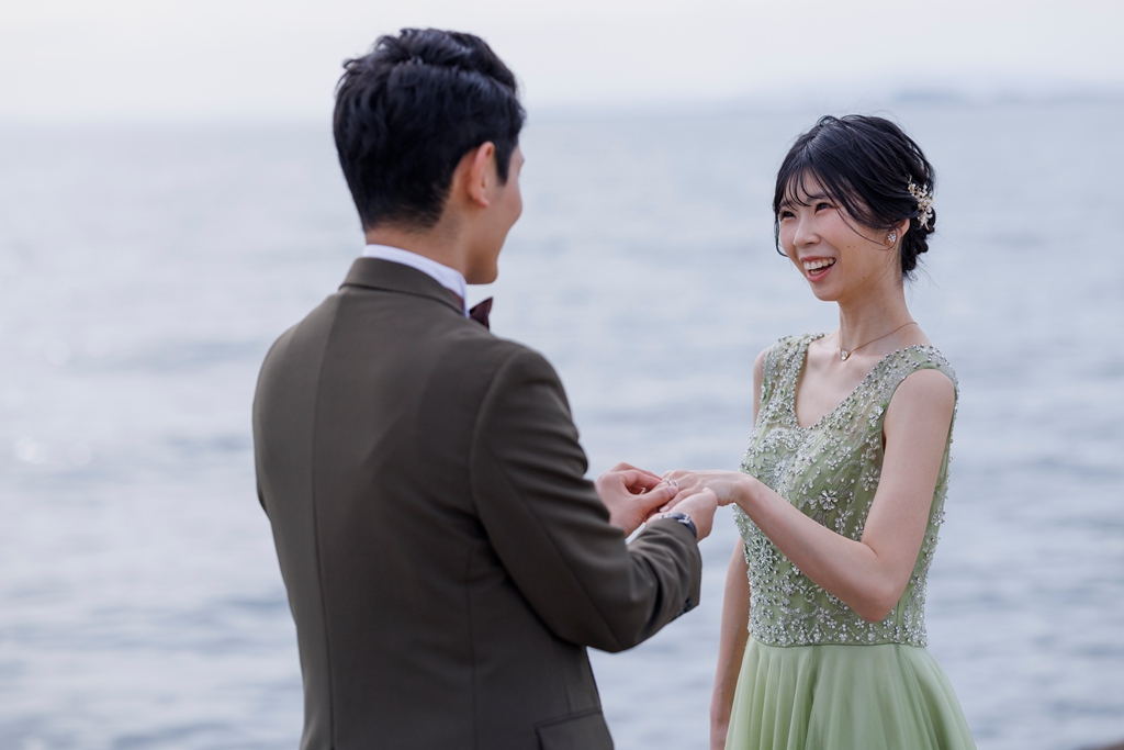 これから共に歩んでいく人生のはじまりが、静かに、でも力強く感じられました。眩しい陽射しの中で交わす笑顔、ふとしたまなざし、