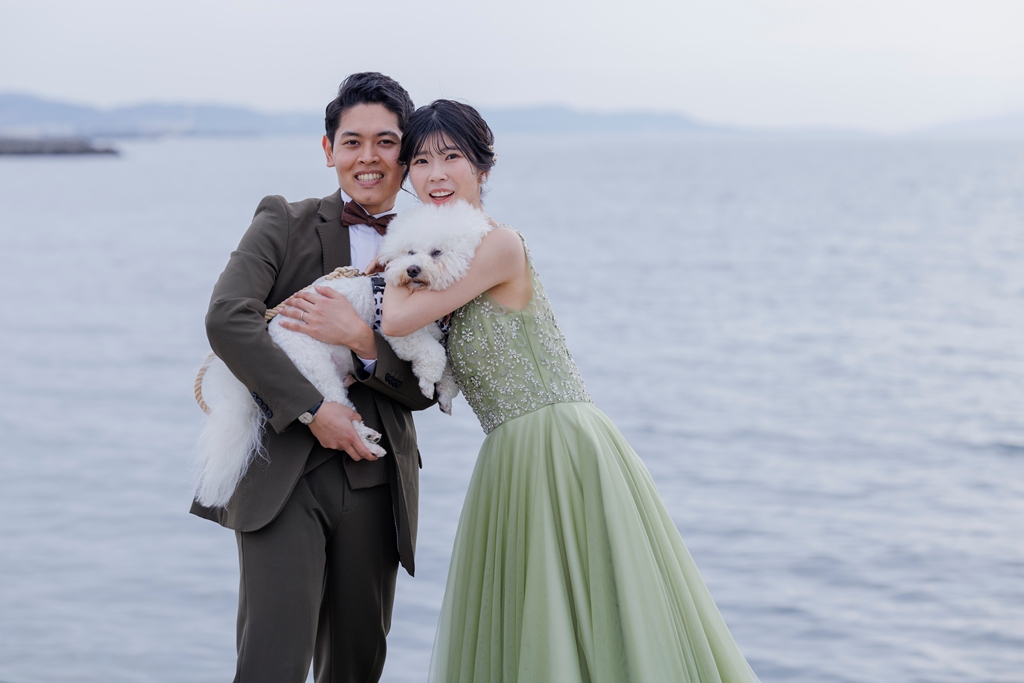良かった点を教えてください - ロケーションでマーブルビーチで撮影しました。愛犬や家族、持ち込みの小物を使って上手に撮影いただいたり、撮影中の気遣いもよくしていただきました。カメラマンさんもユニークな方で皆で楽しく撮影できました。海と緑の場所で撮影いただき色々なパターンの写真を撮っていただきました。