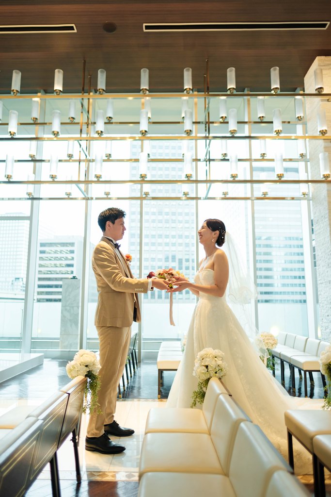 どうか、このチャペルで刻まれたひとときが、おふたりのこれからの人生を支える温かな光となりますように。歩む未来が、今日の光景のように明るく、穏やかで、そして華やかに広がっていくことを心から願っています。