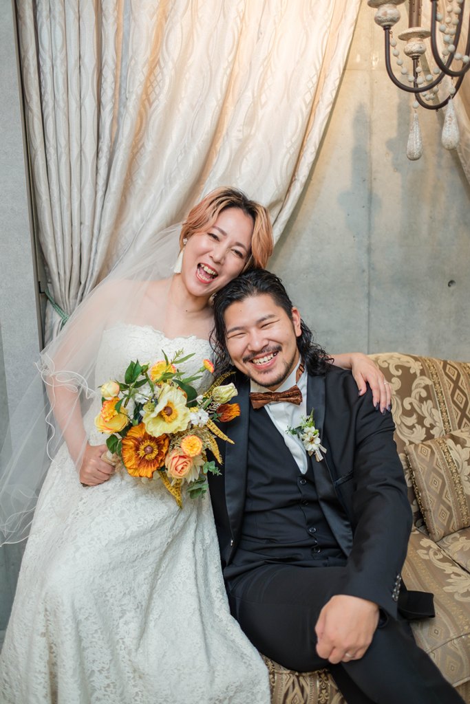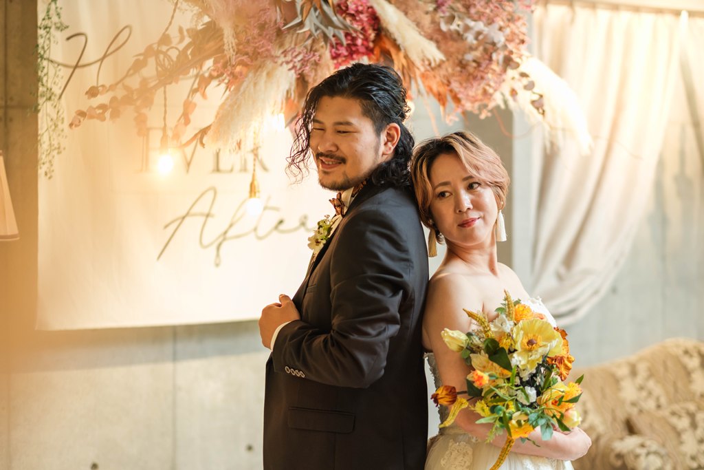 今回お持ち込みいただいたブーケや小物も、おふたりの雰囲気にぴったりで、写真に彩りを添えていました。