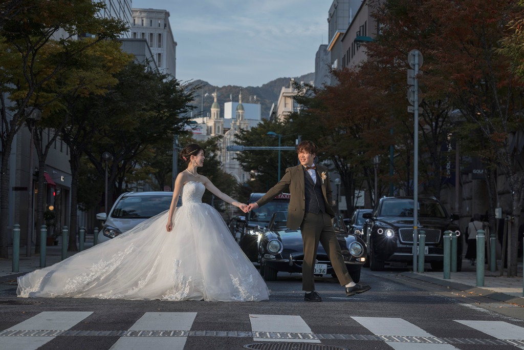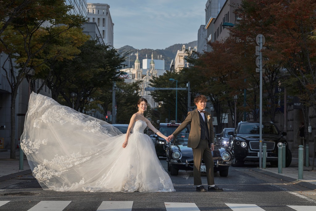地元付近で思い出の場所であり、大仙公園は和装ロケーション撮影で人気があると聞き、実際の撮影写真を見て庭園のみでしたが決めました。居留地に関しては雰囲気が日本らしくなく洋装のロケーションとして初めから決めていました。 - FROM