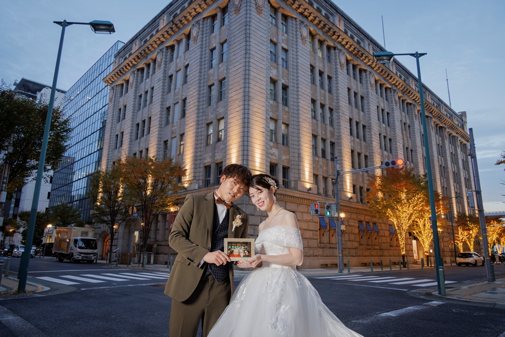 イルミネーションが美しく輝く冬の旧居留地と、夜景が印象的なハーバーランドでの撮影は