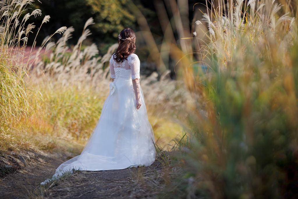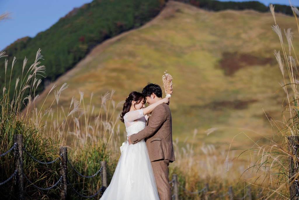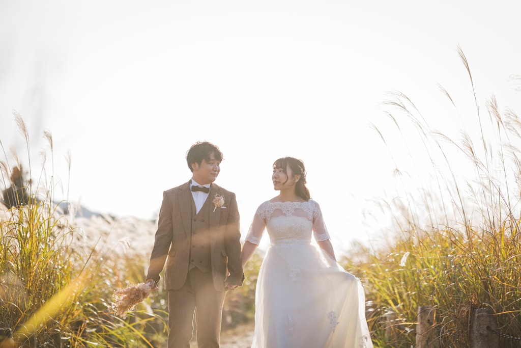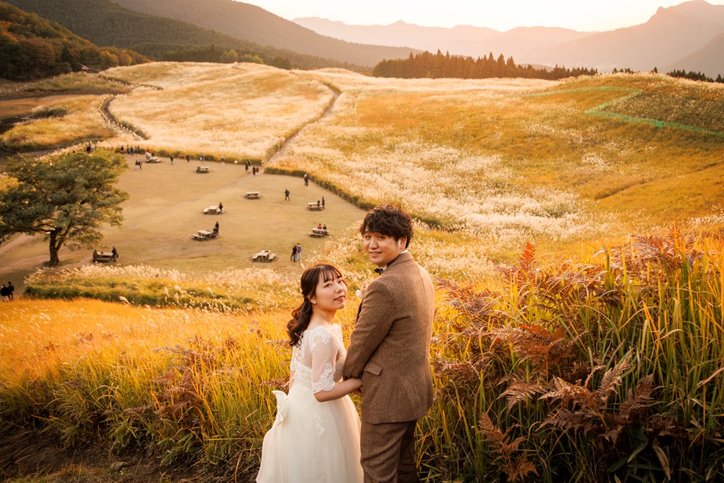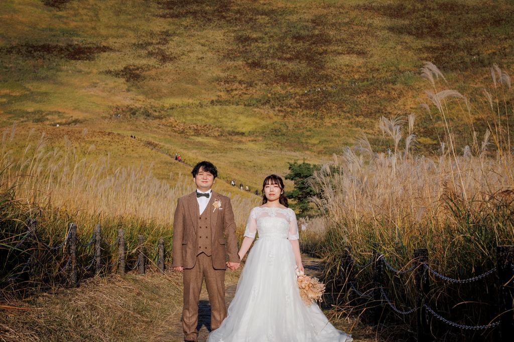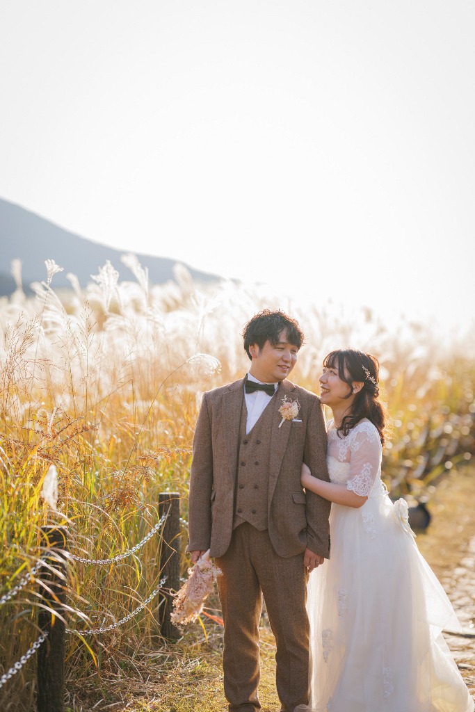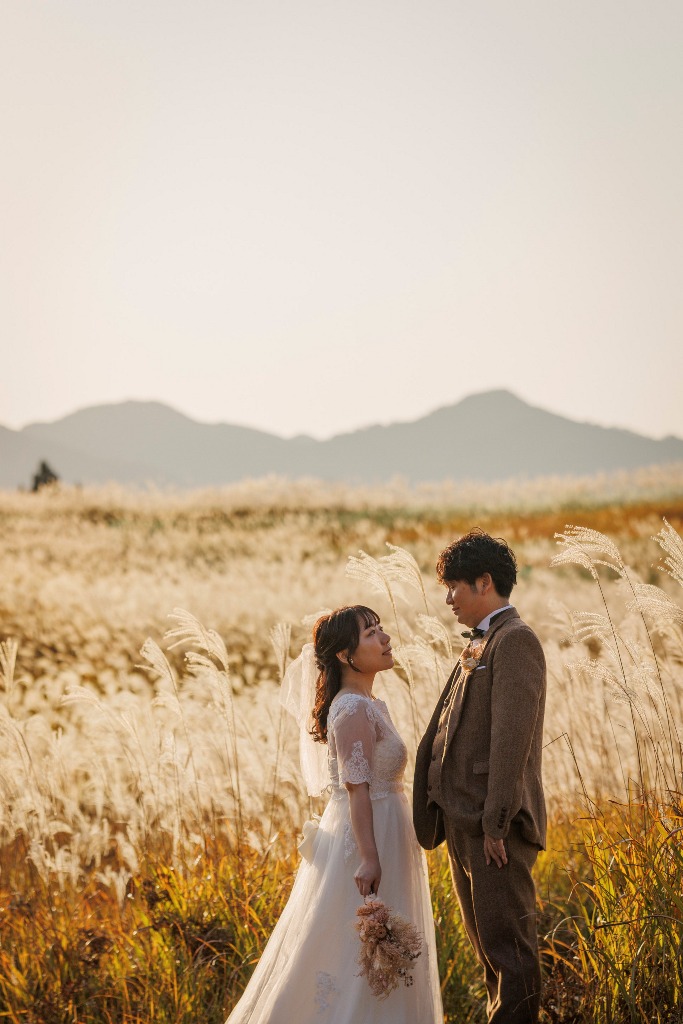 洋装を撮らせてもらった曽爾高原は、交際するきっかけとなった場所で、希望の11月撮影にはススキが綺麗ということもあり選びました。 - FROM