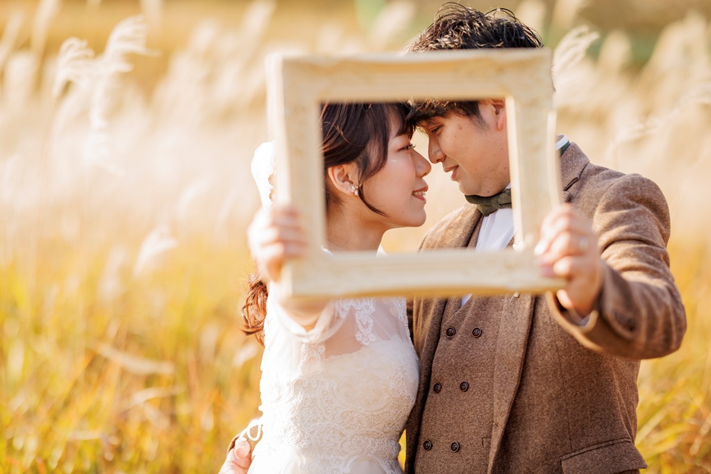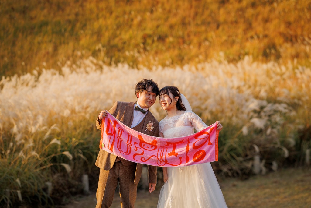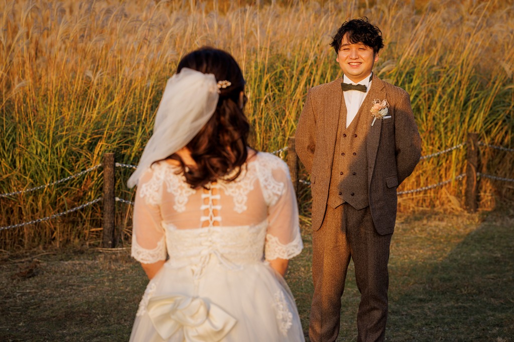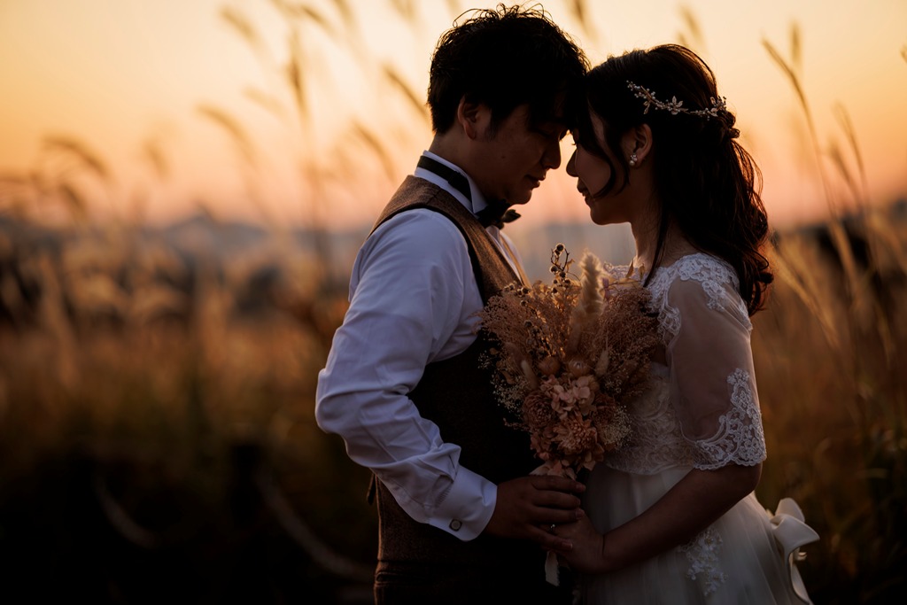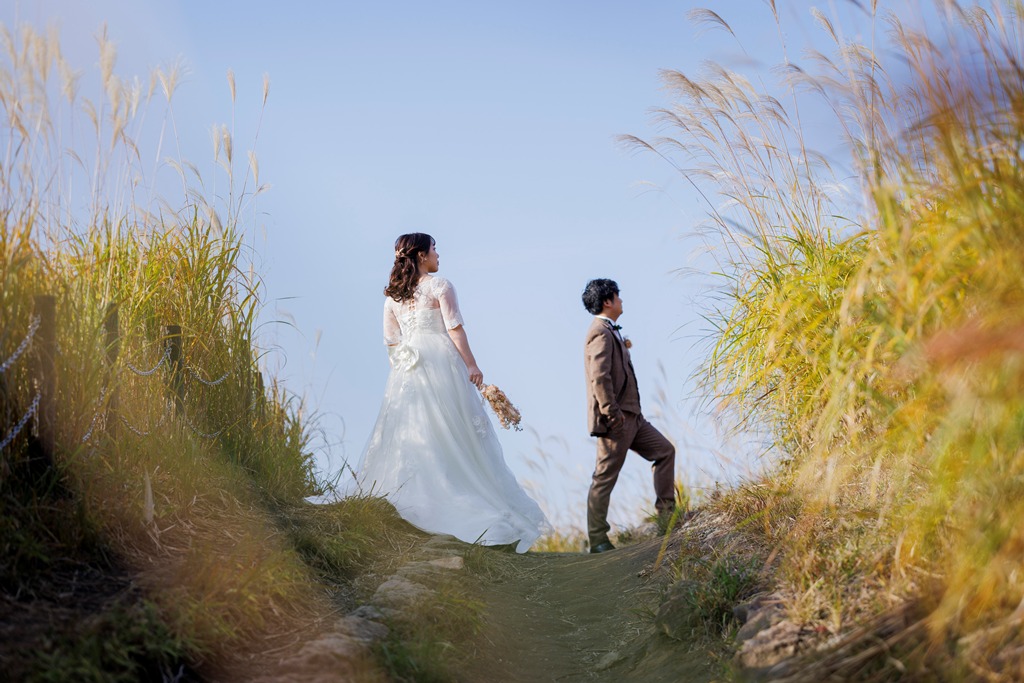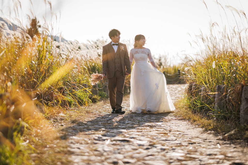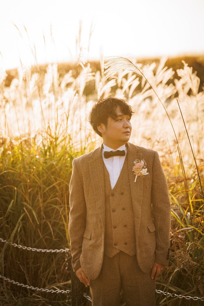 洋装を撮らせてもらった曽爾高原は、交際するきっかけとなった場所で、希望の11月撮影にはススキが綺麗ということもあり選びました。 - FROM