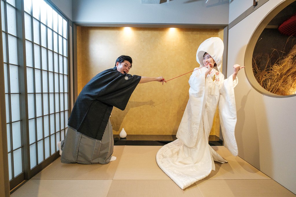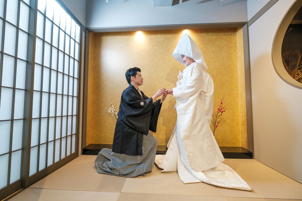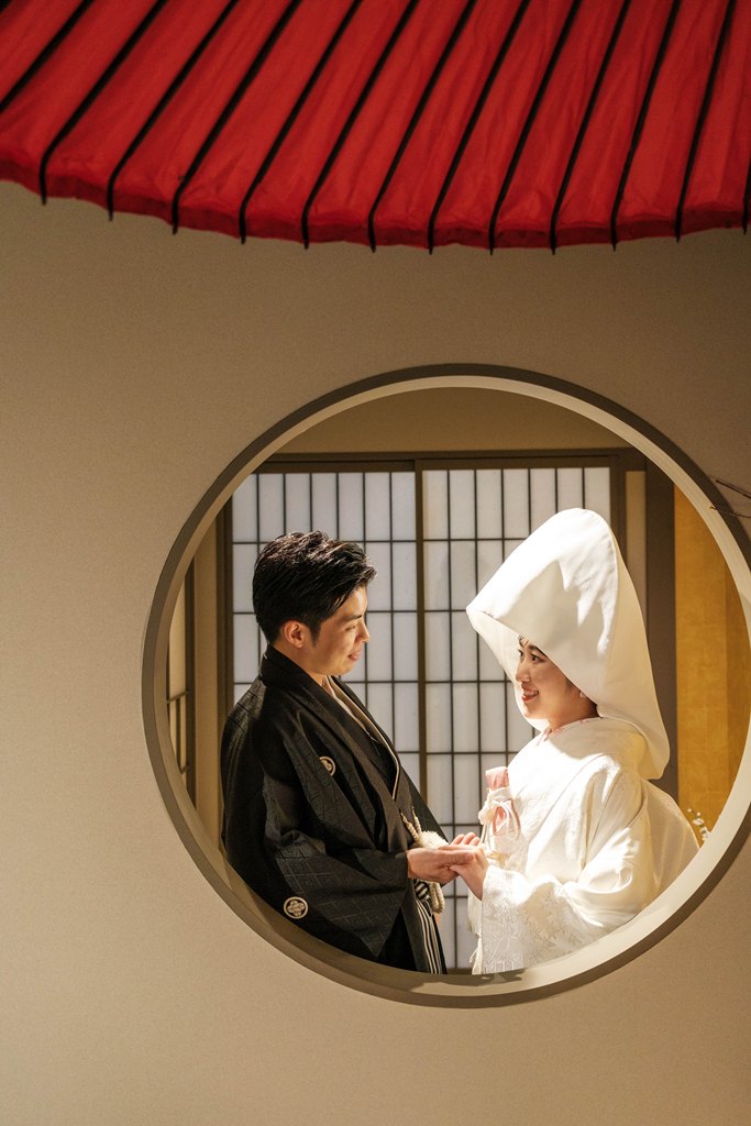 スタジオの和室では綿帽子を着用されておりますが、とてもお似合いで素敵です♡