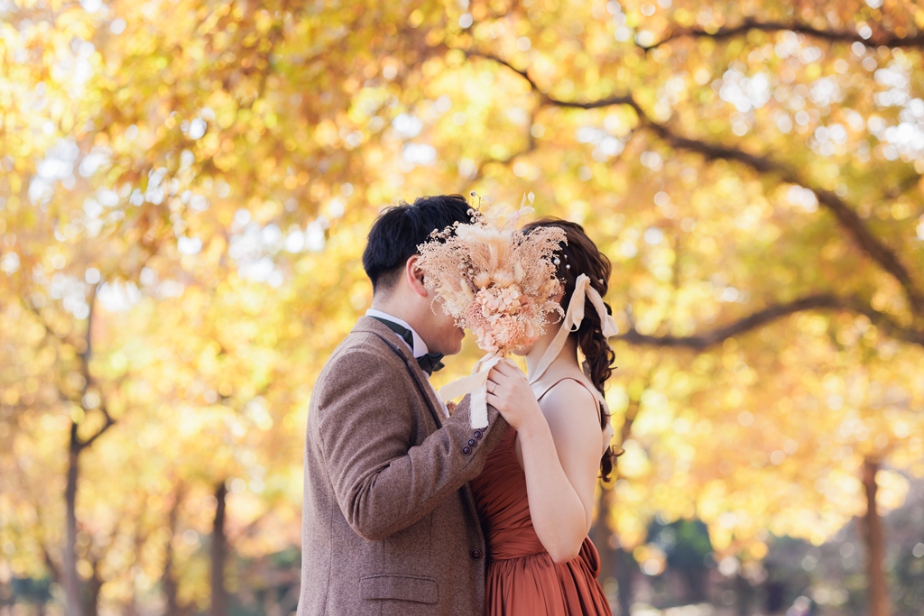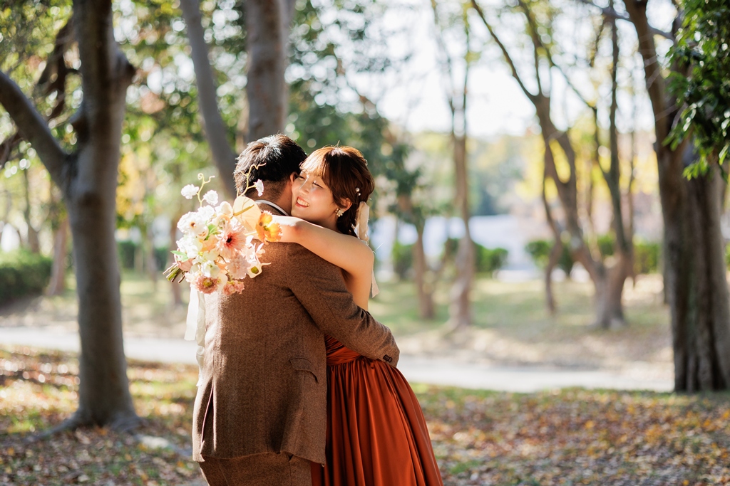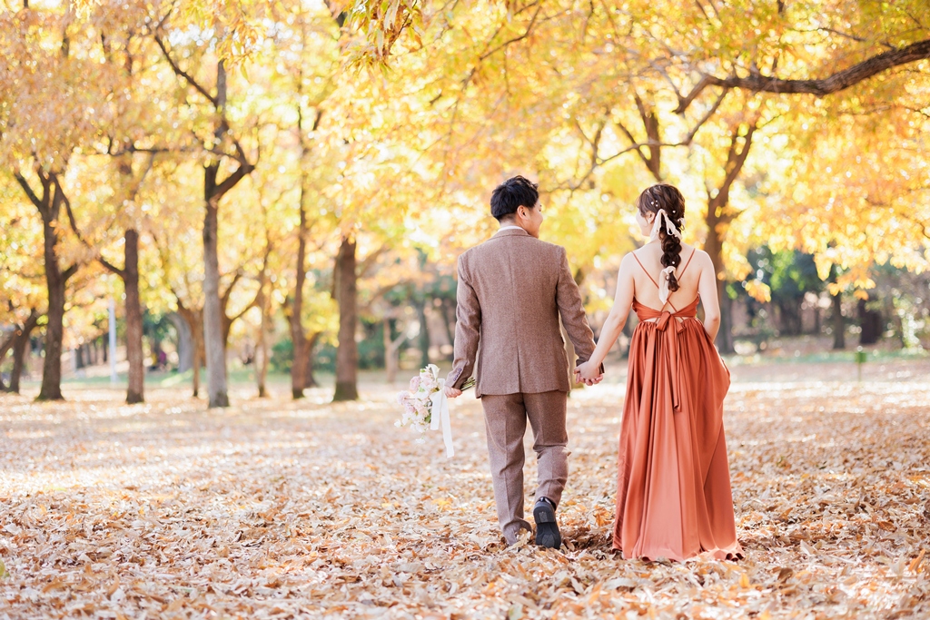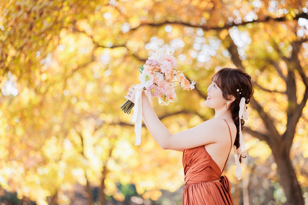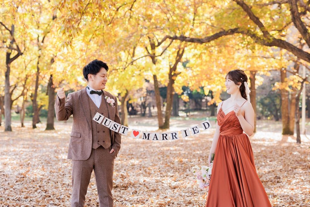 秋ならではの色づいている木の雰囲気もとても素敵です。末永くお幸せに….♡