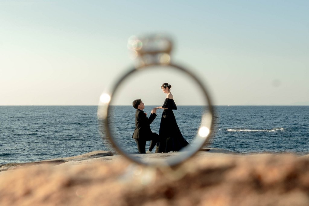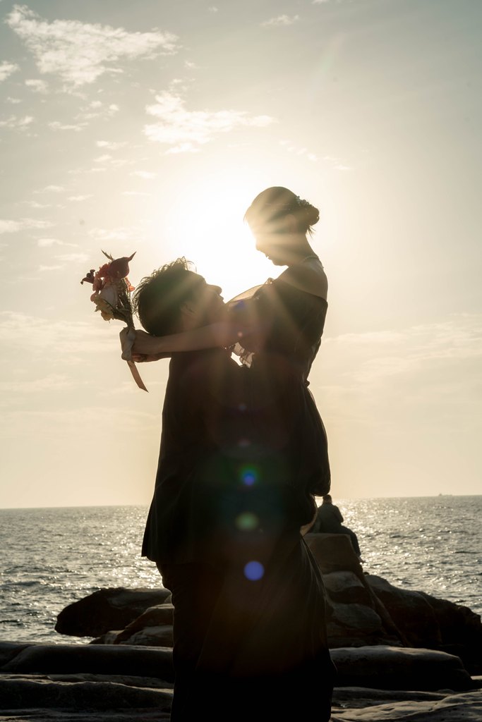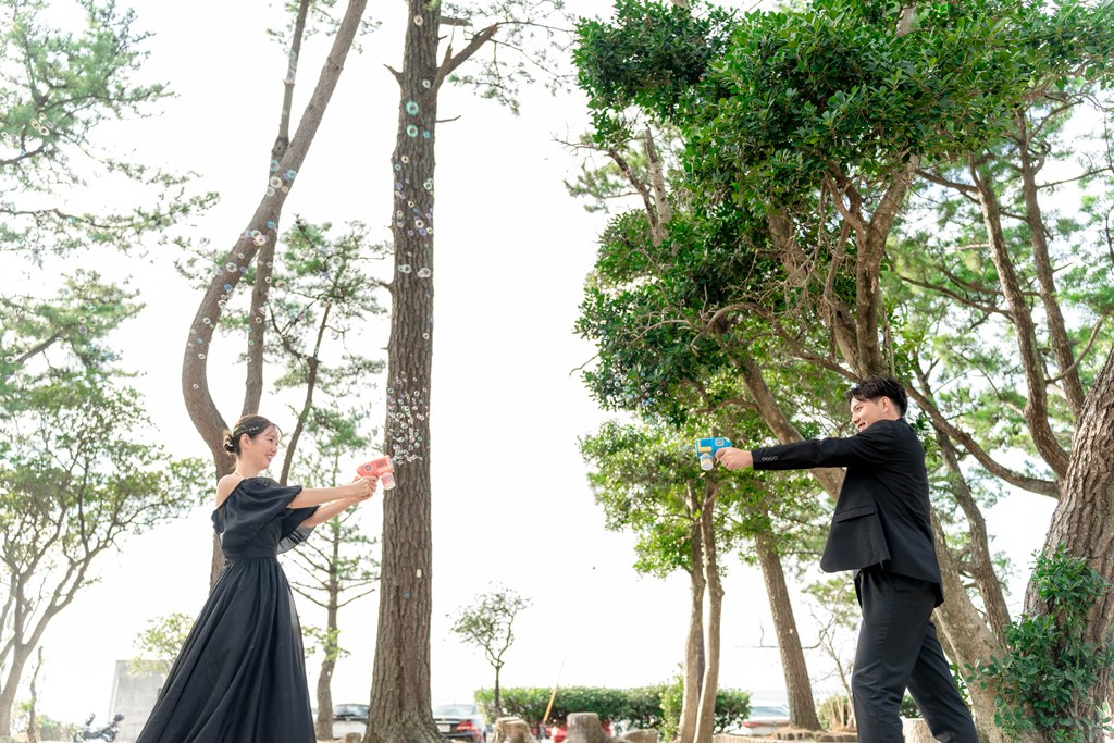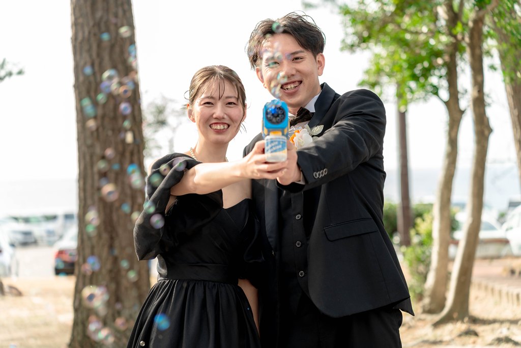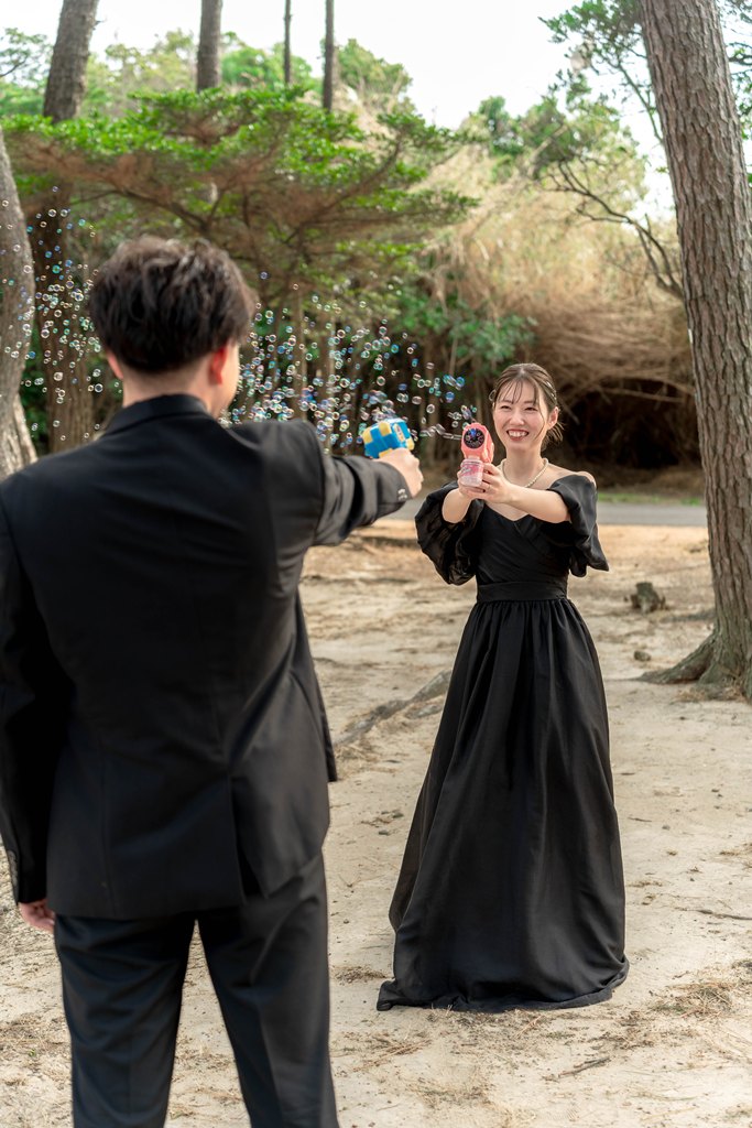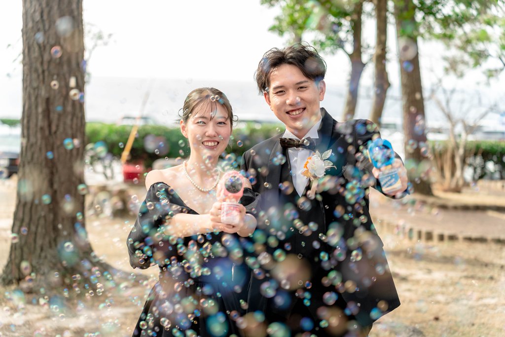 サンセットと海近くでシャボン玉 | 大阪の前撮り&フォトウェディング|【公式】WEDDING AVENUE