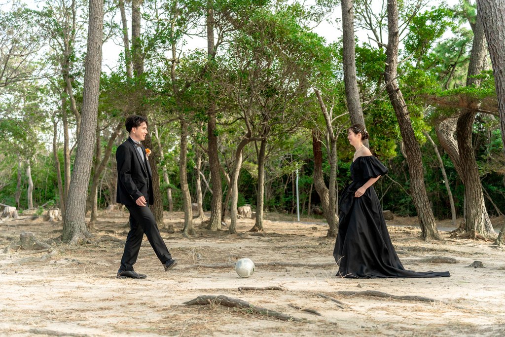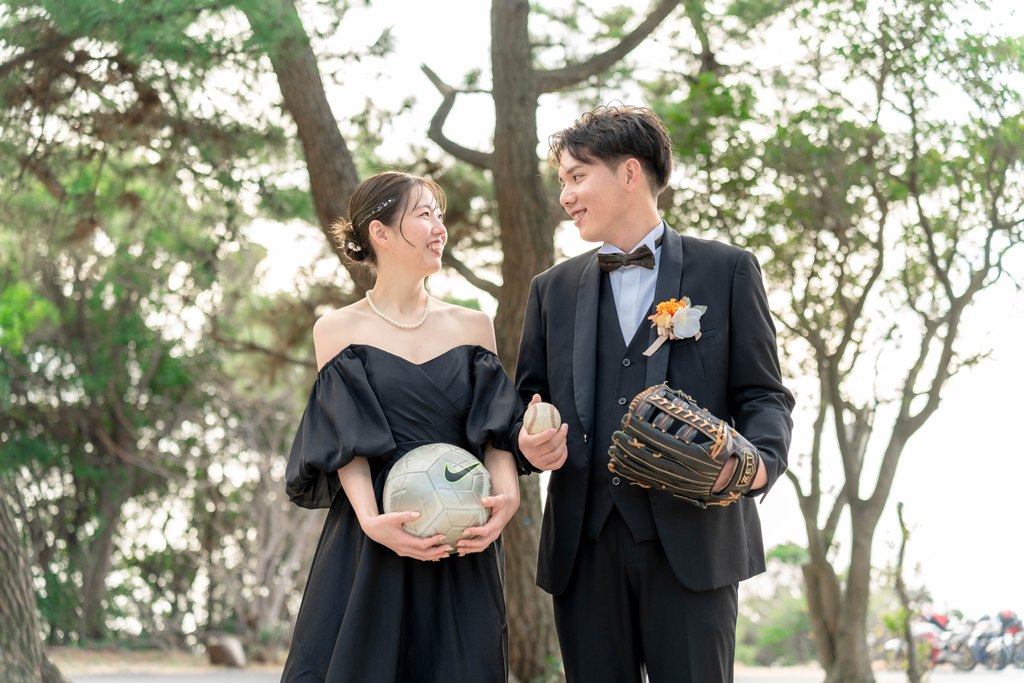 サンセットのやわらかな光の中での撮影や、シャボン玉を使った幻想的なシーン、そしてお二人の思い出が詰まったサッカーボールや野球ボールを取り入れた撮影など、とても素敵なお時間をご一緒させていただき、スタッフ一同心より感謝しております。
